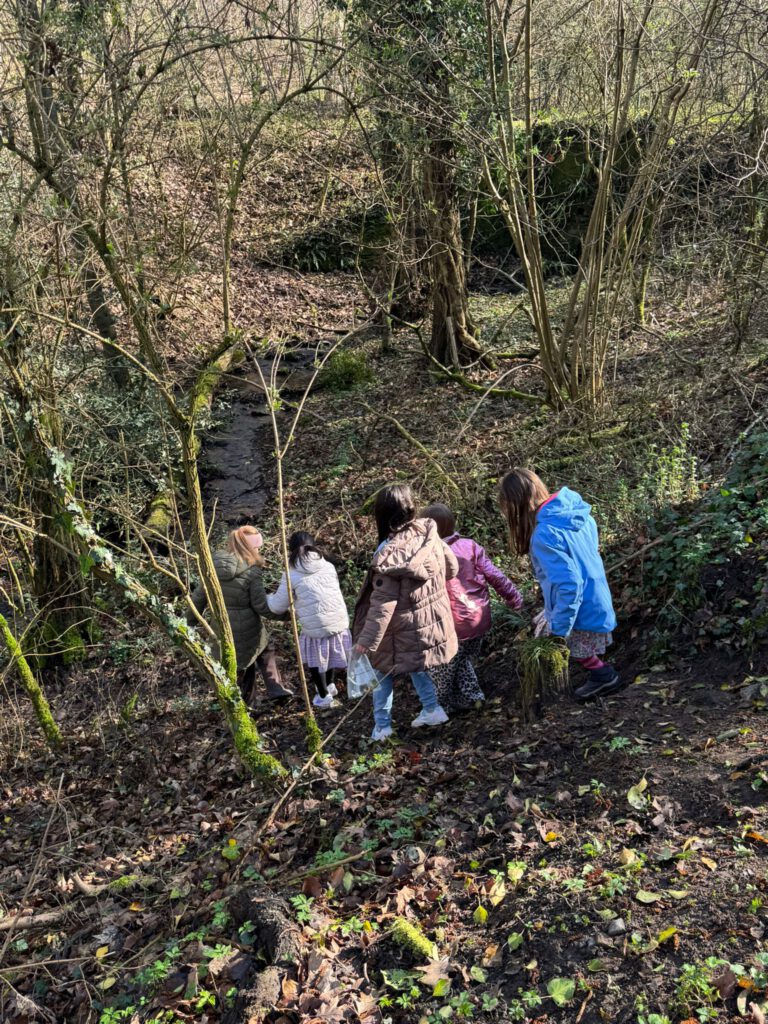 Dem phänologischen Frühling auf der Spur, durchwanderte die dritte Klasse den nahegelegenen Niederhofener Forst, den suchenden Blick auf Waldboden und Bachufer gerichtet. Welche Pflanzen und Tiere ließen sich dort entdecken? Einige Pflanzenteile wurden zwecks geplanter Untersuchungen im Sachunterricht gesammelt.
